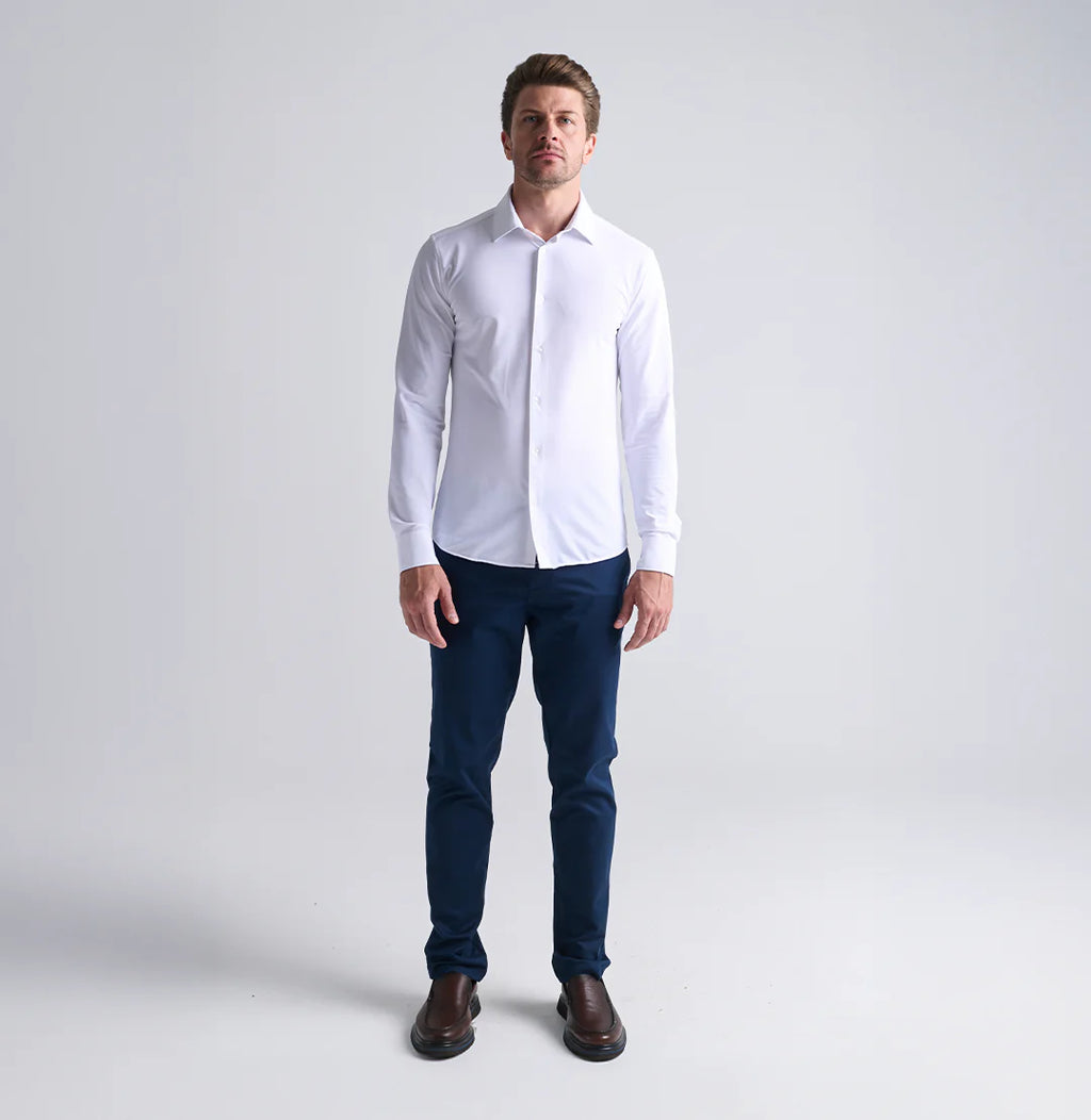 A Camisa Social Minimal é confeccionada em tecido tecnológico com efeito dry, proporcionando conforto e frescor ao longo do dia. Não precisa ser passada e seca rapidamente, sendo resistente a deformações.